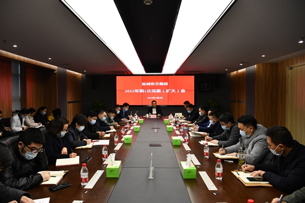 今天上午,鹽城東方集團在集團七樓1號會議室召開黨委(擴大)會議,集團黨委書記、董事長、總經理王旭東主持會議并講話。集團黨委領導班子成員出席會議,集團總會計師列席會議,中層以上人員、子公司經營層參加會議。