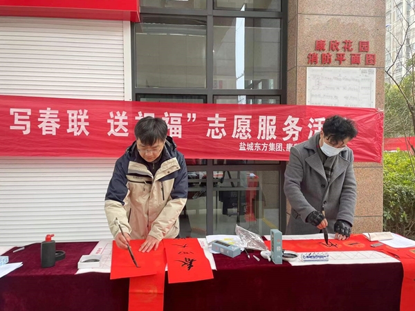 此次活動是鹽城東方集團深入開展“黨建+志愿服務”行動的生動實踐,志愿者將自己的愛好通過書寫春聯的形式表達出來,以寫春聯的形式來聯系群眾、貼近基層,讓居民們享受了一場書法盛宴和文化大餐,進一步體會到了民俗里的年味兒,增強了百姓的幸福感和歸屬感。