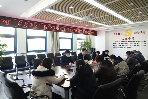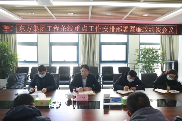 1月30日,鹽城東方集團工程條線在集團1115會議室組織召開重點工作安排部署暨廉政約談會議。集團黨委委員、副總經理王成林主持會議。東方建設、東方市政及地產公司各經營層、集團工程部部門負責人及各項目建設負責同志參加會議。