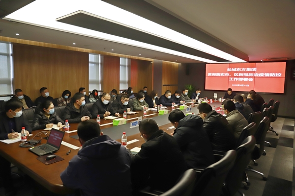2月17日,鹽城東方集團在7樓一號會議室召開貫徹落實市、區新冠肺炎疫情防控工作部署會,對疫情防控工作進行再部署、再落實、再強化。集團黨委書記、董事長、總經理王旭東主持會議并講話。集團黨委領導班子成員出席會議,集團總會計師列席會議,中層以上人員、子公司經營層參加會議。