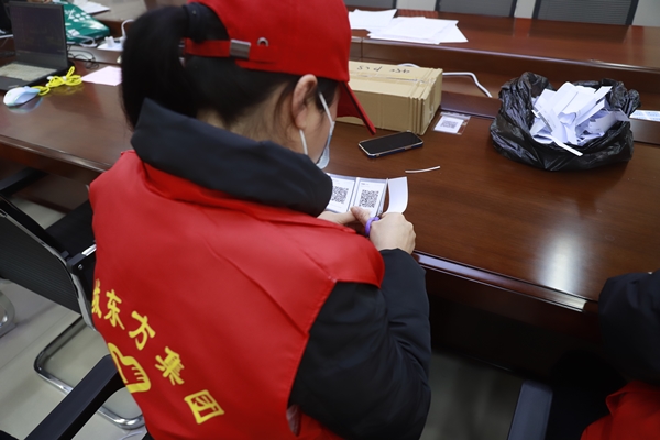 為了提升核酸檢測登記環節速度,志愿者還配合工作人員通過電話核實信息并宣傳告知居民,以家庭為單位,提供打印采樣碼服務,大幅提升了核酸檢測工作效率。“通過及時掌握居民信息,對還未打印領取紙質采樣碼的居民進行針對性的通知,為核酸檢測工作開展提供了便利。”陽光社區點位志愿者負責人陳浩說。