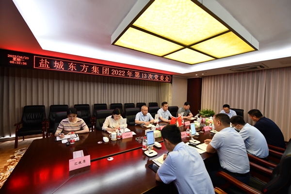 6月20日,鹽城東方集團(tuán)黨委在1121會(huì)議室召開黨委委員會(huì)議,傳達(dá)上級(jí)會(huì)議精神和文件精神,研究部署集團(tuán)近期重點(diǎn)工作。集團(tuán)黨委書記、董事長、總經(jīng)理王旭東主持會(huì)議并講話。集團(tuán)黨委領(lǐng)導(dǎo)班子成員參加會(huì)議,集團(tuán)總會(huì)計(jì)師列席會(huì)議。