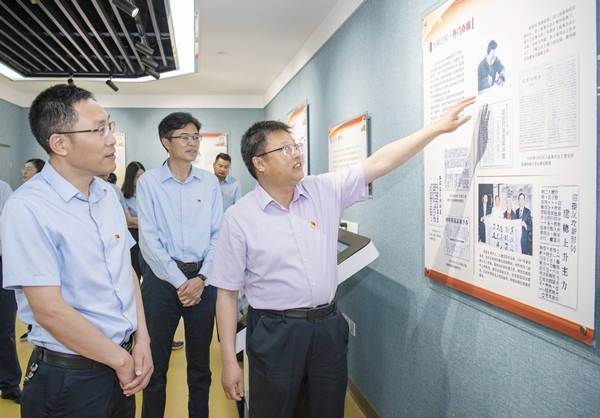 在李強的引導(dǎo)下,集團(tuán)一支部黨員首先參觀了報社標(biāo)志性展館和點位。在報史館,黨員們感受到了鹽阜大眾報在抗戰(zhàn)烽火硝煙中與革命老區(qū)同呼吸、共命運的壯麗詩篇,回顧了79年來始終堅持黨報姓黨,在書寫時代、謳歌人民中踐行“從大眾中來,到大眾中去”辦報宗旨的光輝歷程。在學(xué)習(xí)強國鹽城學(xué)習(xí)平臺編輯部,“央媒級”展示鹽城形象、講好鹽城故事的學(xué)習(xí)宣傳陣地令人矚目,12個欄目以圖文、視頻、音頻等多種形式,多維度展現(xiàn)習(xí)近平新時代中國特色社會主義思想在鹽城的生動實踐。在新聞發(fā)布廳,《LOVING YANCHENG》鹽城城市形象宣傳片,讓大家沉浸式體驗“鹽城,一個讓人打開心扉的地方”的4K視聽盛宴,充分享受立體式宣傳矩陣的魅力。