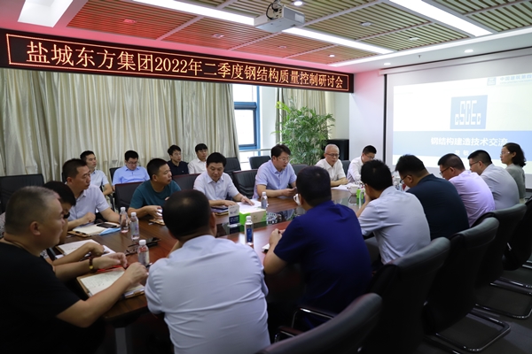 為進一步提升集團工程條線項目建設管理水平,9月8日,集團黨委委員、副總經理王成林在集團1115會議室主持召開鹽城東方集團工程條線鋼結構質量控制研討會,特邀請中建四局六公司總工龍敏健、副總工王建春兩位建筑專家就鋼結構建造技術及吊裝過程中的痛點難點等問題為大家答疑解惑。集團在建重點項目負責人、集團工程管理部、東方建設、市政、地產公司等部門及子公司負責人參加了本次會議。