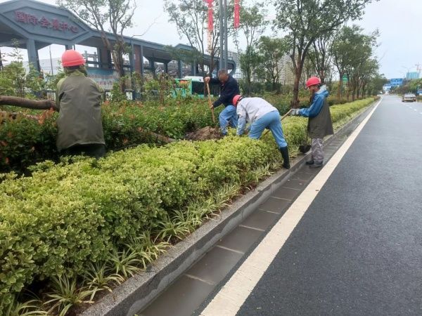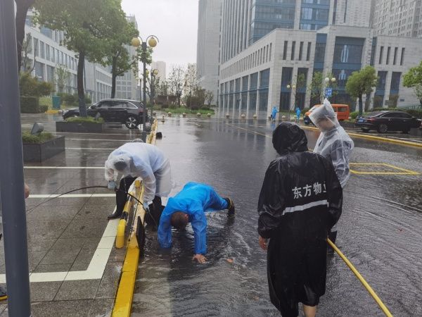 下轄子公司中,東方物業落實下水管道及排水泵等設施排查檢修,向公寓住戶傳達臺風預警信息,并對戶外廣告欄、提示牌等設施進行加固;東方園林將“一片林”及區內的綠化養護路段劃分為四大區域,增派人手加大巡查力度,對區域內的樹木進行加固、防倒伏處理;東方安通突出關鍵環節,重點排查道路路面積水及出水口堵塞、交通指示牌及道路護欄倒塌等現象,針對故障問題第一時間搶修到位。