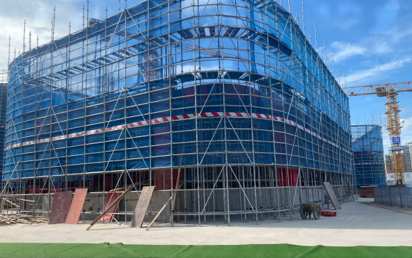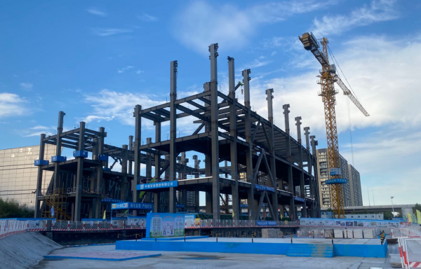 目前D館主體鋼結(jié)構(gòu)封頂,地下室二次結(jié)構(gòu)完成80%;E、F館主體鋼結(jié)構(gòu)完成45%,地下室砌體、后澆帶封堵同步進行。力爭10月底主體結(jié)構(gòu)封頂,明年6月份竣工驗收。