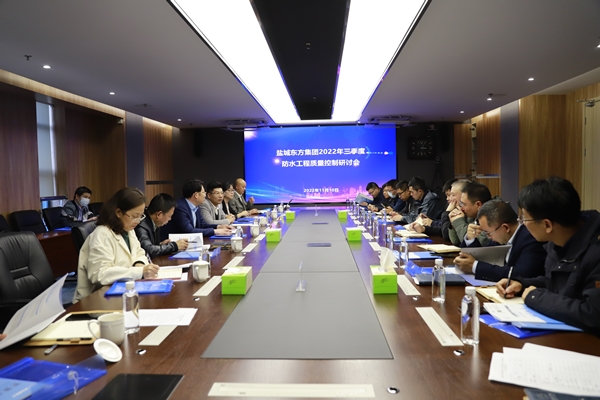 近年來,鹽城東方集團投資建設項目數量多、體量大,防水工程涵蓋房屋建筑工程、防護工程、市政道路及通道、隧道等工程,防水面積達四十多萬平方米,防水等級要求較高。為進一步加強建筑工程防水工程質量管理,11月10日,集團黨委委員、副總經理王成林在集團7樓1號會議室主持召開鹽城東方集團三季度防水工程質量控制研討會,特邀請知名防水品牌技術專家就防水工程質量控制、技術難點痛點等方面問題進行研討交流。