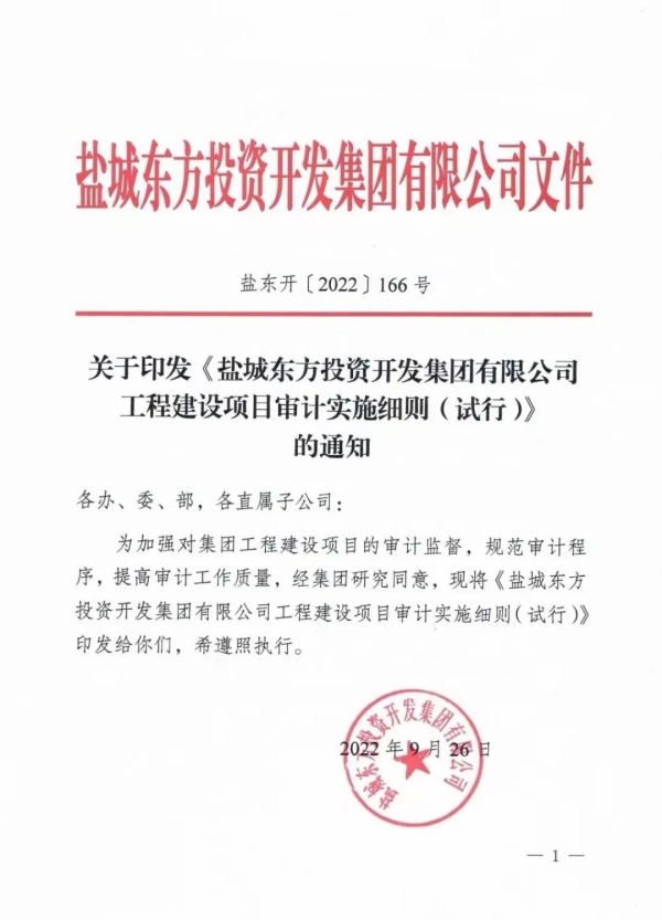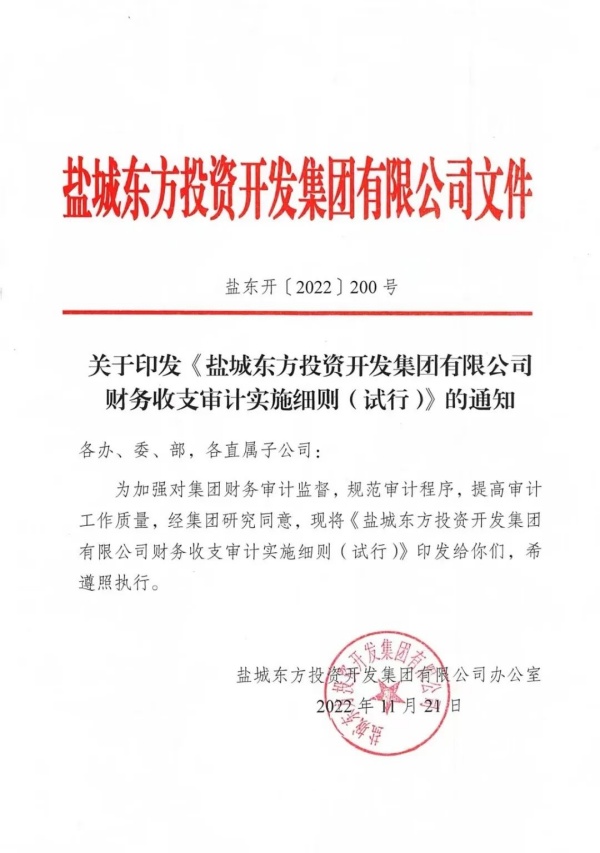 審計是企業維護財經法紀、改善經營管理、提高經濟效益的一項獨立性的經濟監督活動。近年來,鹽城東方集團恪守國企紀律規矩和責任擔當,根據國家法律法規和行業規范,制定了《集團公司內部審計工作辦法(試行)》等制度,為提升內部審計工作質效夯基提質。
