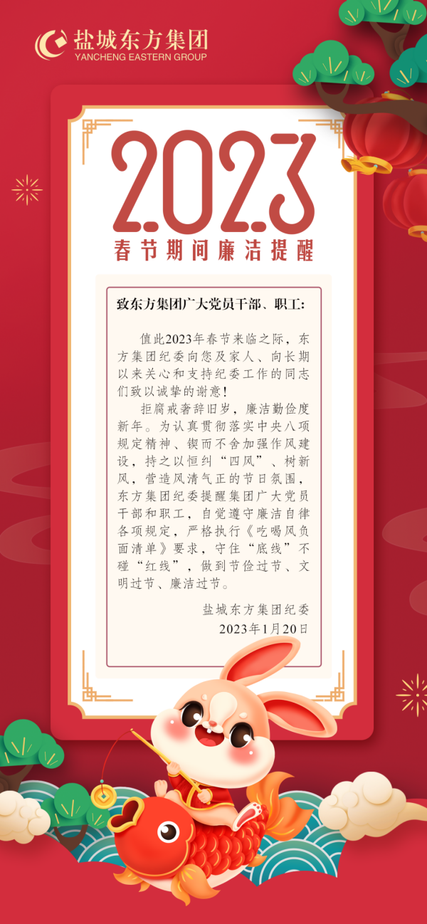 年關(guān)亦是“廉關(guān)” 過節(jié)不能“失節(jié)”丨鹽城東方集團(tuán)紀(jì)委新春“廉”祝福請查收