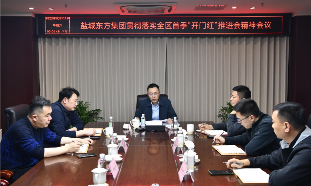 3月11日上午全區首季“開門紅”推進會結束后,鹽城東方集團于當天下午立即組織傳達學習會議精神,并結合實際研究部署下階段重點工作。集團黨委書記、董事長、總經理王旭東主持會議并作工作部署,集團領導班子成員及集團辦公室、督查辦等部門負責人出席會議。