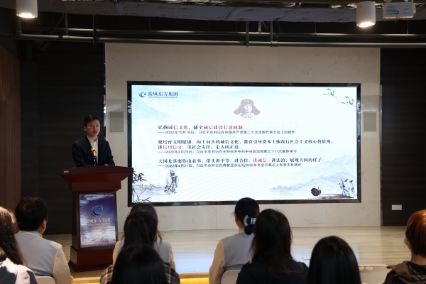 5月31日上午,鹽城東方集團(tuán)舉辦“傳誠(chéng)信之美 做誠(chéng)信之人”主題道德講堂暨誠(chéng)信教育活動(dòng),本次道德講堂圍繞“唱歌曲、誦經(jīng)典、看短片、學(xué)模范、談感悟、作承諾”六個(gè)環(huán)節(jié)展開(kāi),集團(tuán)各部門(mén)、子公司30余名職工代表參加活動(dòng)。
