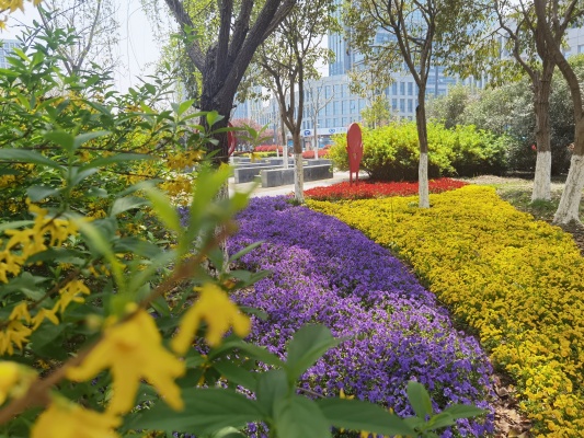 這花開錦繡令市民、游客駐足稱贊的背后,離不開東方園林養護人的巧手匠心,為讓經開區在四季均呈現出最佳的觀賞效果,東方園林把“細節”作為關鍵點,有計劃、有步驟地開展澆水,花灌木修剪、防寒設施拆除、補植、施肥、有害生物防控等春季養護工作,并開展路面清掃、設施清潔、綠地衛生保潔、安全引導等多項游園服務,精細化、專業化的養護管理使園林景觀煥發春日繽紛色彩。