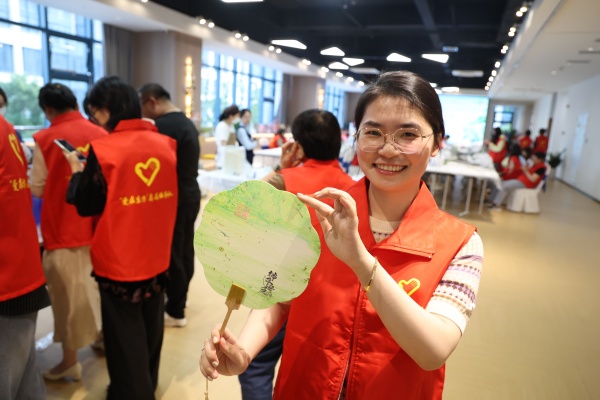 端午節贈扇也是傳統習俗之一,寓意祈福納祥、一扇解千愁。活動現場,大家還共同制作漆扇,以漆為筆,以水作畫,在親身實踐中感受非物質文化遺產漆扇藝術之美。