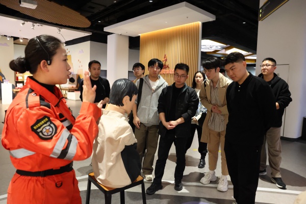 在常州防災避險體驗館大家分別實景模擬體驗了地震避險、地鐵逃生、涉水逃離、火災逃生、心肺復蘇等教學課程。在地震災害區,大家在了解地震基本知識和準備應急物品后,置身1:1還原的“8級強震”環境,模擬在真實情景中地震逃生避險、余震防護、埋壓自救與互救,掌握地震避難時正確的保護姿勢;在氣象災害區大家體驗了遭遇暴雨臺風和顛簸的大巴涉水逃生的情景,學習掌握了正確的避險常識和疏散方法;在交通安全區地鐵車廂內,大家掌握了如何利用列車緊急通話報警,以及如何正確使用安全門手動解鎖和起火逃生的方法;在消防安全區,通過講解員演示和學員實操,大家掌握了防煙面罩、滅火器、逃生繩結的使用等知識;在日常安全和緊急救護區域,大家學習了心腹復蘇、海姆立克急救法等專業知識,并現場進行了實際操作。