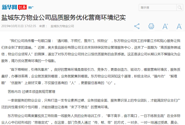 作為企業(yè)的“管家”,物業(yè)的管理水平和服務(wù)理念直接影響著客商的幸福指數(shù)。東方物業(yè)經(jīng)過10多年的發(fā)展,不斷尋求無微不至的品質(zhì)服務(wù),用心為客商打造更美好的生活方式,實(shí)現(xiàn)跨越式發(fā)展。