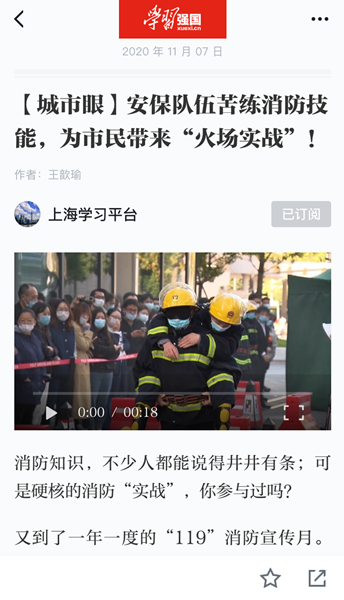 11月7日,《學(xué)習(xí)強(qiáng)國》客戶端上海學(xué)習(xí)平臺(tái)以“安保隊(duì)伍苦練消防技能,為市民帶來‘火場實(shí)戰(zhàn)’”為題,宣傳鹽城東方集團(tuán)上海公司燕舞保利綠地廣場項(xiàng)目舉辦消防應(yīng)急演練活動(dòng)。據(jù)了解,燕舞保利綠地廣場被上海市政府推選為“消防工作典型優(yōu)秀單位”。