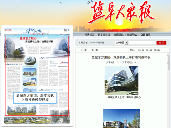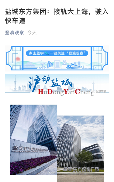 11月19日,《鹽阜大眾報》第3版“滬動鹽城”欄目,以《鹽城東方集團:深度接軌上海 打造轉(zhuǎn)型樣板》整版聚焦鹽城東方集團積極踐行“兩海兩綠”、融入“滬動鹽城”戰(zhàn)略,謀求高質(zhì)量發(fā)展的生動實踐。同日,“登瀛觀察”公眾號轉(zhuǎn)發(fā)推介。
