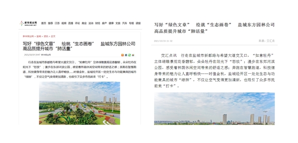 成立八年來,鹽城東方集團旗下子公司鹽城東方園林工程有限公司聚焦主業,在綠色生態文明建設的答卷中,寫好“綠色文章”,繪就“生態畫卷”,逐步構建成“專業化經營,品牌化運作,市場化競爭”的發展新格局,打造了上百項“政府滿意、社會贊譽”的精品綠化工程,為城市注入了強勁的“肺活量”,不斷增強市民群眾的幸福感、獲得感。