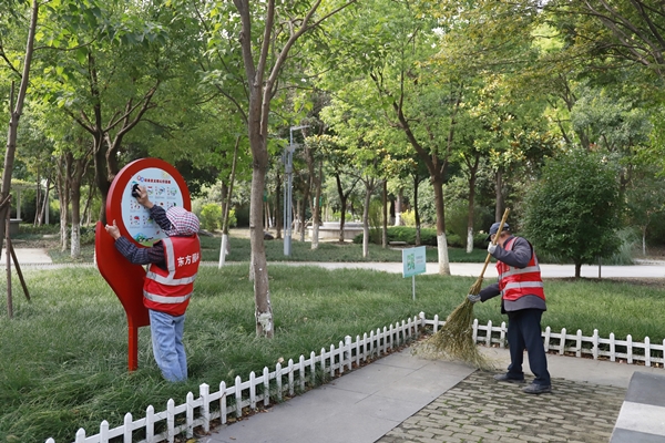 文明創建全力以赴,東方園林同樣充分展現“綠色先鋒”精益求精的品質追求。東方公園和東郊河濱公園既是鹽城經開區生態美景的“金招牌”,也是文明創建的“主戰場”,公園按照“一日兩清掃、12小時保潔”制度,采取機械化作業和人工清掃相互配合的精細化方式,全方位開展綠化保潔、修剪、補植工作,徹底消除綠化衛生死角,通過時令草花搭配,營造主題景觀小品和多彩花境,增設宣傳標語,綜合提升城市形象窗口,讓公園景區“顏值”更靚,文明底色更艷!