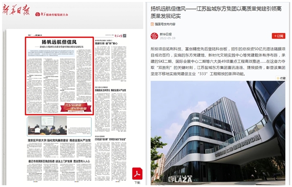 近日,《新華日報》“一線視點”版頭條發表“揚帆遠航但信風——鹽城東方集團以高質量黨建引領高質量發展紀實”文章,《學習強國》平臺同步轉發,共同講述高質量黨建助推國企迸發蓬勃生機與活力的“東方故事”。