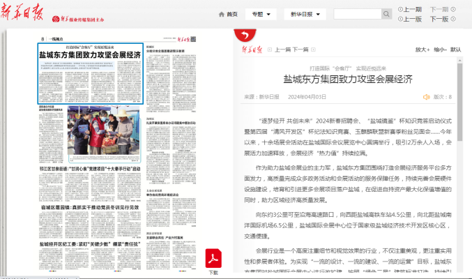 4月3日,《新華日報》第8版“一線視點”頭條,以《打造國際“會客廳” 實現(xiàn)近悅遠來——鹽城東方集團致力攻堅會展經(jīng)濟》為題,聚焦鹽城東方集團發(fā)力“會展經(jīng)濟”賽道,依托區(qū)位優(yōu)勢、優(yōu)質(zhì)載體、卓越團隊、品牌服務(wù),致力打造區(qū)域經(jīng)濟發(fā)展強引擎的生動實踐。