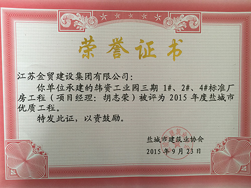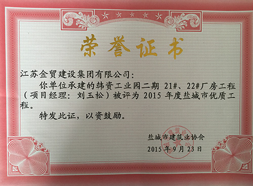 韓資工業(yè)園服務(wù)中心內(nèi)裝飾工程榮獲2015年度鹽城市優(yōu)質(zhì)工程