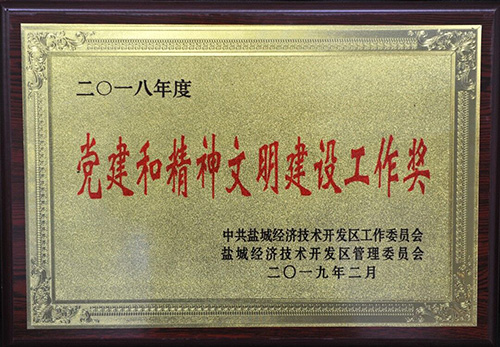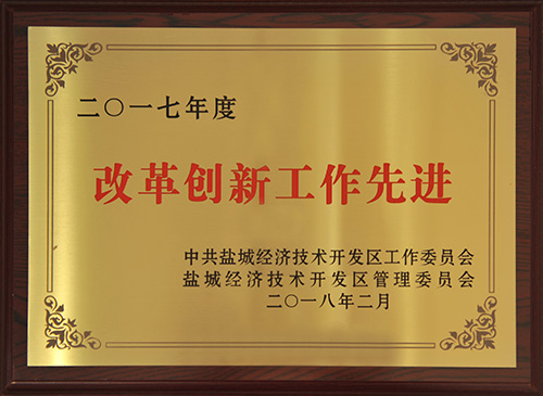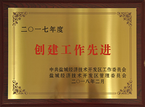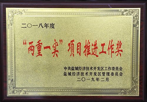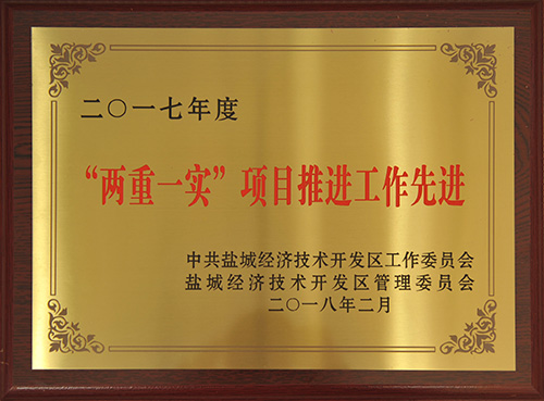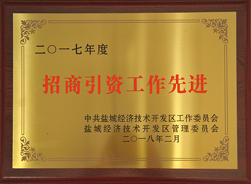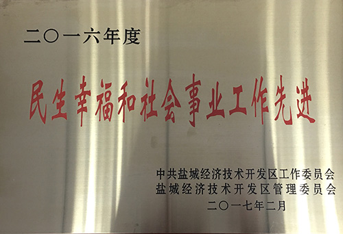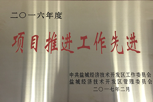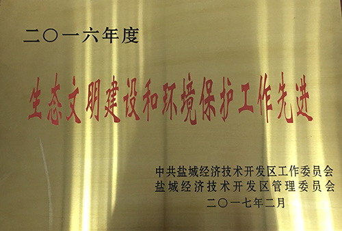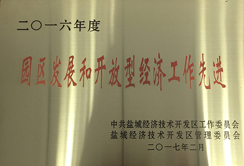 榮獲2016年度鹽城經(jīng)濟技術(shù)開發(fā)區(qū)二十佳納稅企業(yè)、項目推進(jìn)工作先進(jìn)集體、園區(qū)發(fā)展和開放型經(jīng)濟工作先進(jìn)集體、民生幸福和社會事業(yè)先進(jìn)工作集體、生態(tài)文明建設(shè)和環(huán)境保護(hù)工作先進(jìn)集體、宣傳思想和文化發(fā)展工作先進(jìn)集體、財稅工作先進(jìn)集體七項集體表彰