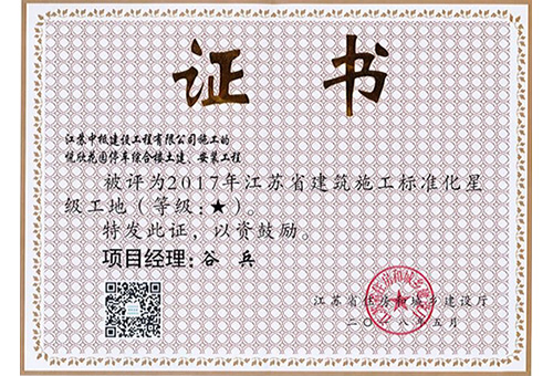 悅欣花園停車綜合樓土建、安裝工程榮獲“2017年度江蘇省建筑施工標(biāo)準(zhǔn)化星級工地”稱號