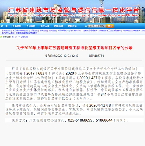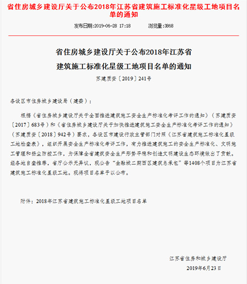 鹽城東尚德商務(wù)樓榮獲2021年度“江蘇省二星級施工標(biāo)準(zhǔn)化工地”;未來科技城北區(qū)、北師大鹽城附校(初、高中部)新建宿舍樓榮獲2021年度“江蘇省一星級施工標(biāo)準(zhǔn)化工地”。