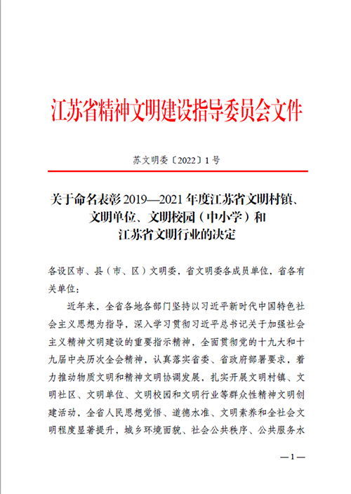 鹽城東方集團獲得“2019—2021年度江蘇省文明單位”榮譽稱號。