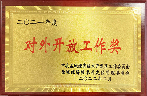 集團榮獲2021年度鹽城經(jīng)濟技術(shù)開發(fā)區(qū)綜合工作先進(jìn)獎,同時獲得對外開放工作單項獎。