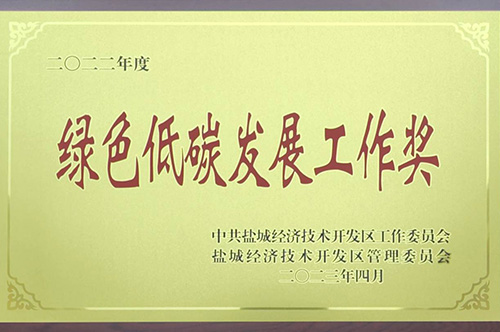 集團榮獲鹽城經(jīng)濟技術(shù)開發(fā)區(qū)2022年度綜合工作先進(jìn)獎,同時獲得綠色低碳發(fā)展工作單項獎。